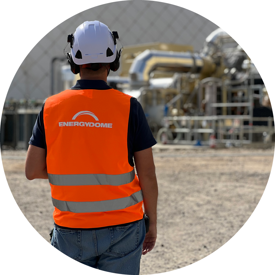 Energy Dome’s technology operates through a thermo-mechanical cycle, charging by drawing carbon dioxide from a ‘Dome’ gasholder, storing it under pressure, and then dispatching it by evaporating and expanding the gas through a turbine back into the gasholder.
