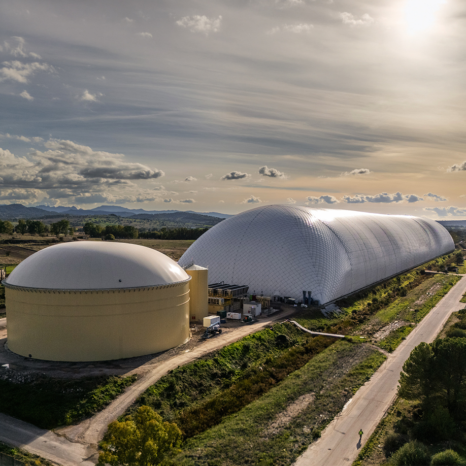 The CO2 Battery uses carbon dioxide as a working fluid in a closed thermo-mechanical cycle. Charging compresses CO2 under pressure; discharging expands it through a turbine to generate electricity. In this standalone configuration, the heat released during charging is stored and reused during discharging.